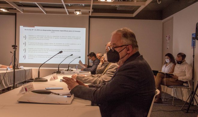El 25 de noviembre se retomaron las reuniones presenciales del Consejo de Coordinación de Universidades del Estado, conformado por los rectores de las 18 instituciones públicas existentes en el país. Entre las principales temáticas abordadas se destaca el diálogo en torno al funcionamiento y los objetivos del Consejo durante sus tres años de funcionamiento. En la jornada también participaron el Ministro de Educación, Raúl Figueroa, el Ministro de Ciencias, Tecnología, Conocimiento e Innovación, Andrés Couve y el Subsecretario de Educación Superior, Juan Eduardo Vargas.